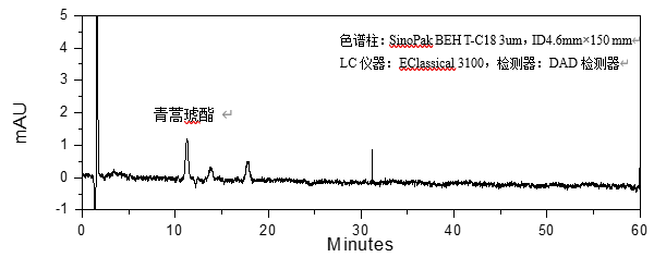 乙腈-磷酸鹽緩沖液(取磷酸二氫鉀1.36g,加水900ml使溶解,用磷酸調(diào)節(jié)pH值至3.0,加水至1000ml)(44∶56)