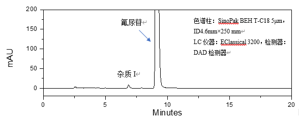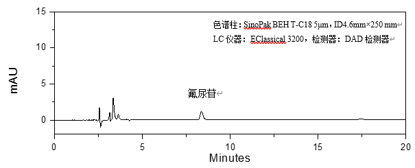 磷酸鹽緩沖液(取磷酸二氫鉀6.8g,加水適量溶解,用氫氧化鈉試液調(diào)節(jié)pH值至7.0,加水稀釋至1000ml)-甲醇(95∶5)