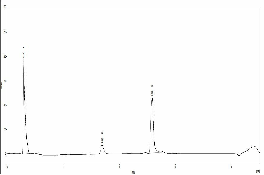 流動相 A:TFA/水=1.5/4000 流動相 B:TFA/乙腈=0.75/4000梯度:A(%):0min 90 1.5mL/min,2.4min 20 1.5mL/min,3.7min 20 1.5mL/min,3.71min 90 1.5mL/min, 4min 90 1.5mL/min,4.01min 90 1.5mL/min,4.02min 90 2mL/min,4.6min 90 2mL/min.