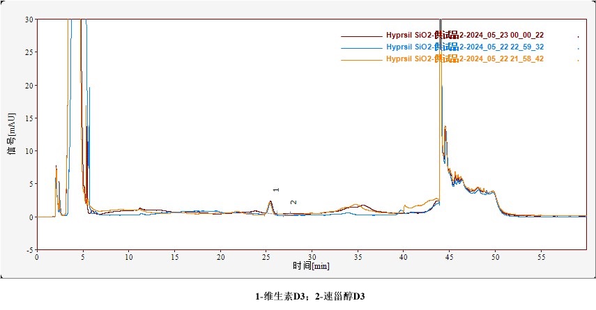 A:正己烷/正戊醇=997/3;B:正己烷/正戊醇=970/30,梯度洗脫