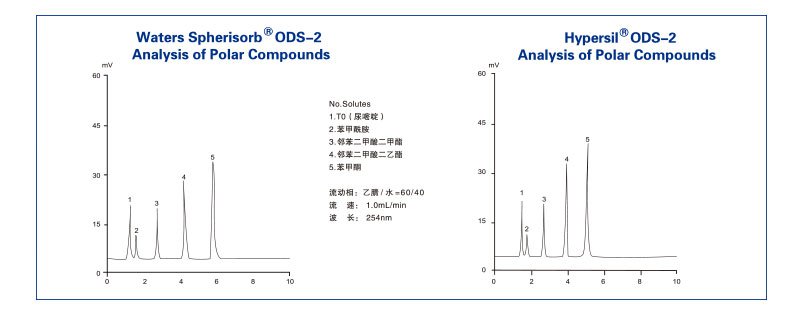 Hypersil填料是基于粒度為5μm和10μm,孔徑為120?的硅膠為基質的HPLC填料,其生產過程的質量控制標準非常嚴格。全世界數千個實驗室使用Hypersil色譜柱已長達40多年,很多應用實例可以從多種文獻及著名雜志上查到。
