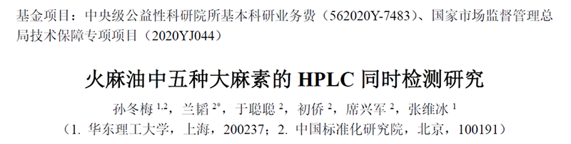 基于此標(biāo)準(zhǔn),華東理工大學(xué)與中國標(biāo)準(zhǔn)化研究院的研究生們使用依利特iChrom 5100高效液相色譜儀和經(jīng)典的Supersil ODS2色譜柱,在國家市場監(jiān)督管理總局技術(shù)保障專項(xiàng)項(xiàng)目中,完成了火麻油中五種大麻素的HPLC 同時(shí)檢測研究。