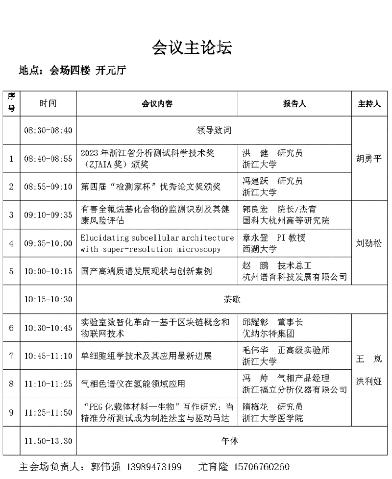 本次會議為期一天,上午設(shè)主會場,邀請了省內(nèi)外知名專家學(xué)者作大會報告;下午設(shè)7個分會場:色譜與質(zhì)譜分析、光譜與電化學(xué)分析、電鏡與微結(jié)構(gòu)分析、細(xì)胞生物與生化分析、生物大分子分析、核磁共振波譜分析以及檢驗檢測機構(gòu)等專業(yè)領(lǐng)域的專家學(xué)者及青年學(xué)者作分會場專題報告。會議還設(shè)有國內(nèi)外廠商分析測試儀器及相關(guān)設(shè)備展區(qū)。