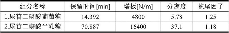 依利特最新款的EClassical3200液相色譜儀搭配性能獨(dú)特的Asahipak NH2P-50 4E色譜柱,對(duì)客戶樣品中的尿苷二磷酸葡萄糖和尿苷二磷酸半乳糖進(jìn)行分析,峰形對(duì)稱性較好,分離度很大,既可滿足定性定量分析的需求,又可滿足大規(guī)模單體制備的需求。