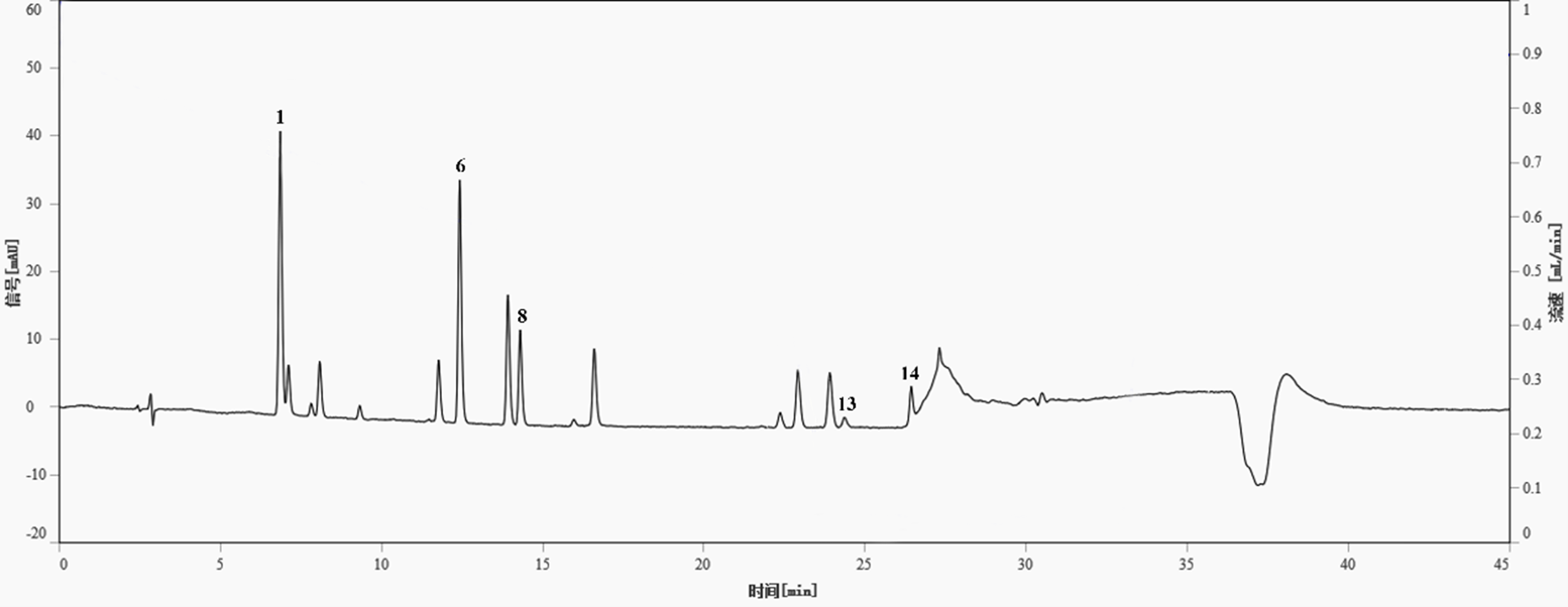 流動(dòng)相組成:流動(dòng)相A:20mmol乙酸銨溶液;流動(dòng)相B:甲醇