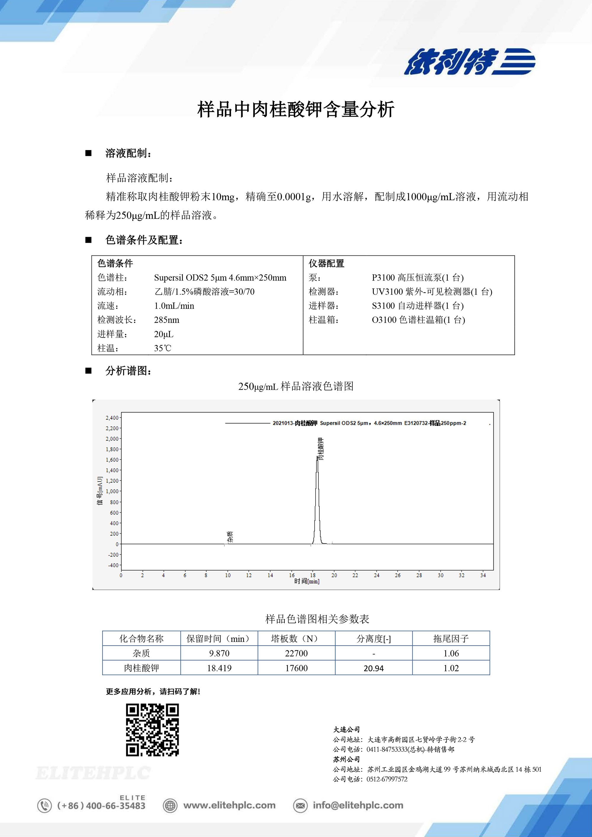 樣品中肉桂酸鉀含量檢測