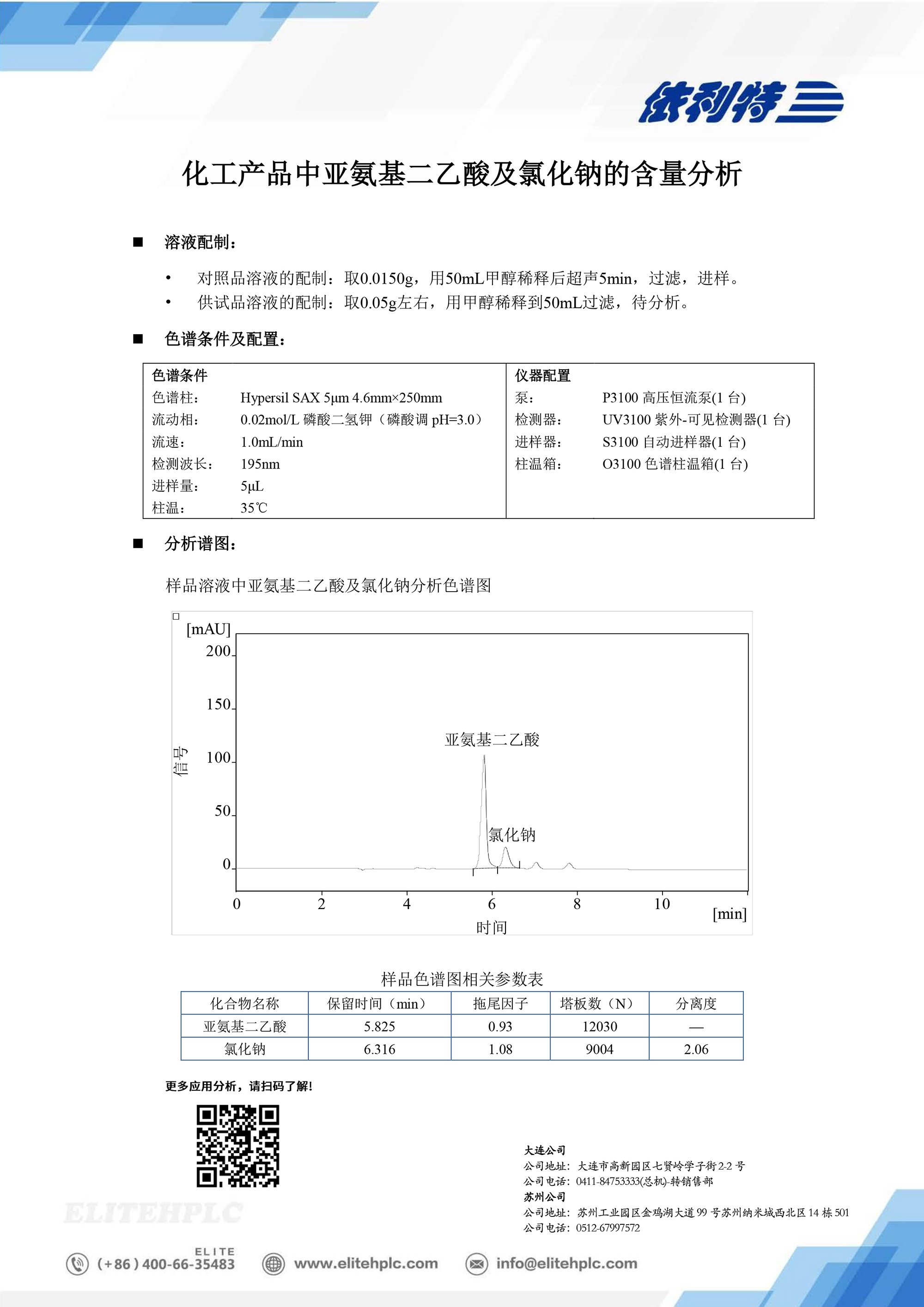 化工產(chǎn)品亞氨基二乙酸及氯化鈉的含量分析