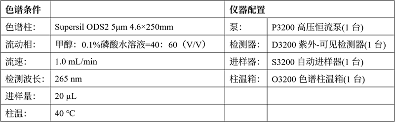 使用依利特新的EClassical 3200高效液相色譜儀,搭配Supersil ODS2色譜柱,能很好的將目標(biāo)物分離,且峰形良好,滿足定性定量分析的要求。