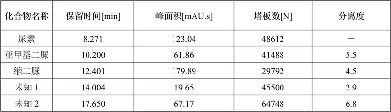 尿素樣品色譜參數(shù)表