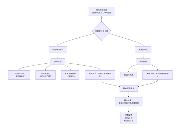 面對(duì)復(fù)雜的干擾現(xiàn)象,我們與客戶技術(shù)團(tuán)隊(duì)共同開啟了一場系統(tǒng)性的“排雷”行動(dòng)。整個(gè)排查思路如下圖所示: