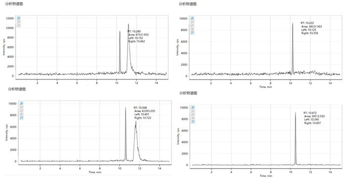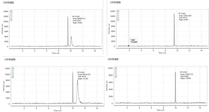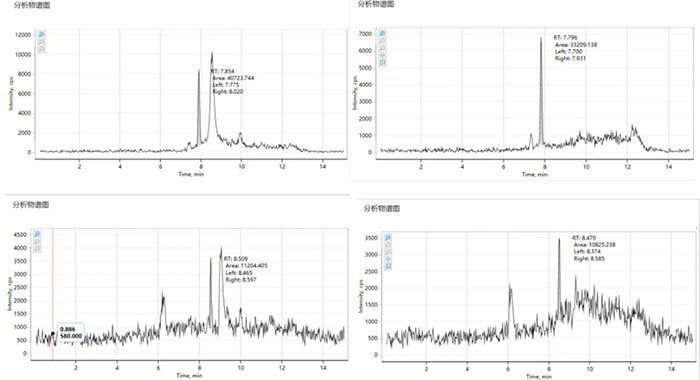 1.烷基酚檢測(cè):基線變得平穩(wěn)干凈,0.04 ppb(客戶要求的下限)低濃度點(diǎn)清晰可辨,所有化合物均穩(wěn)定檢出。