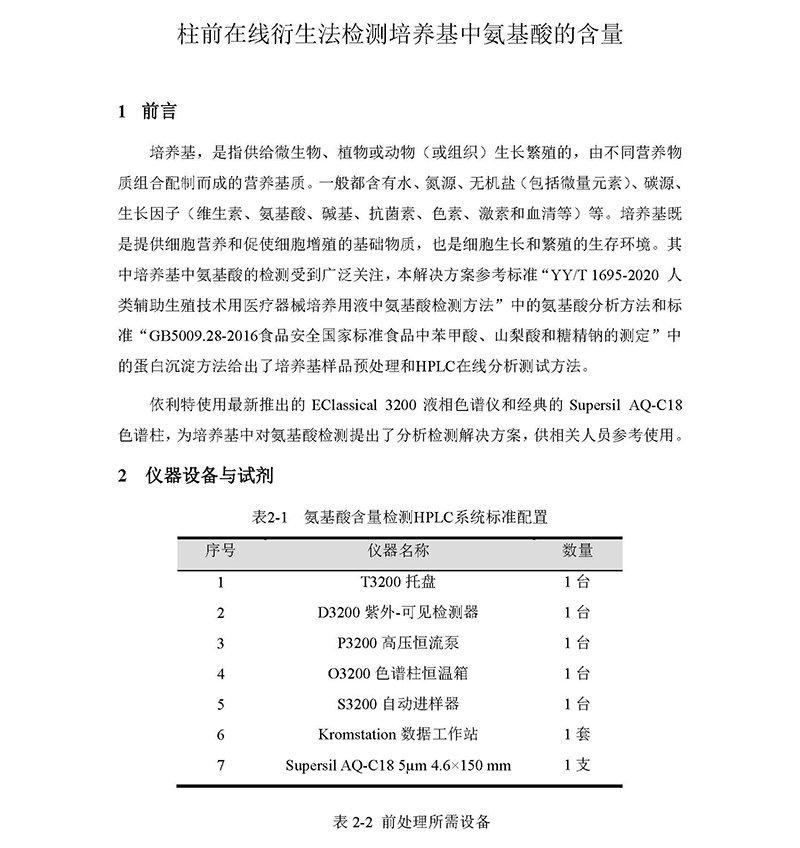 柱前在線衍生法檢測培養(yǎng)基中氨基酸的含量