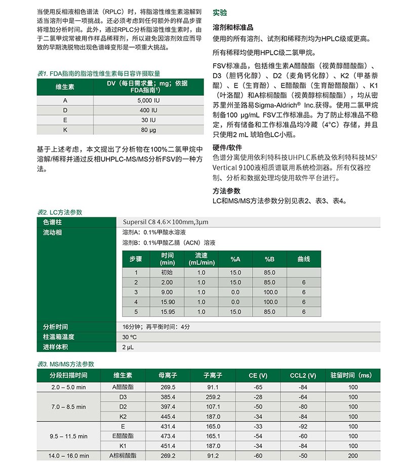 反相UHPLC-MS/MS分析保健食品中的脂溶性維生素