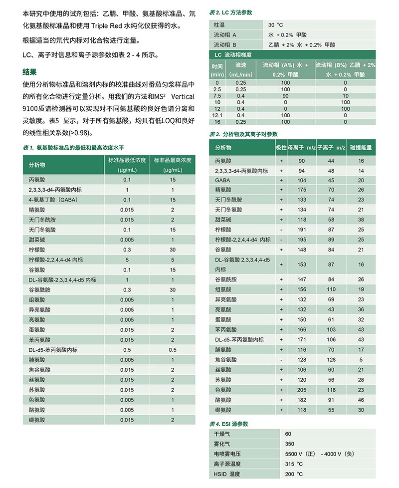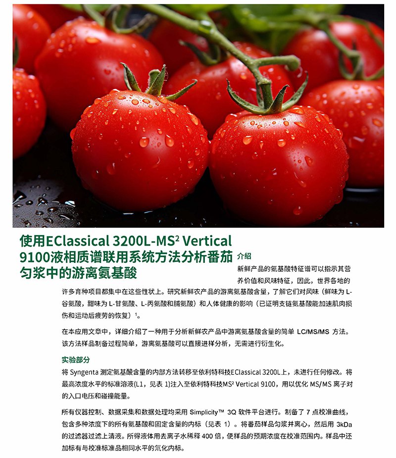 MS2 Vertical 9100液相質(zhì)譜聯(lián)用系統(tǒng)方法分析番茄
