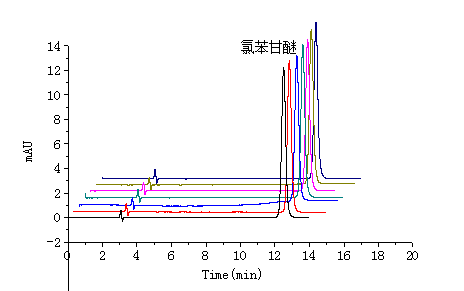 圖5-2 氯苯甘醚標(biāo)準(zhǔn)品連續(xù)進(jìn)樣重復(fù)性譜圖