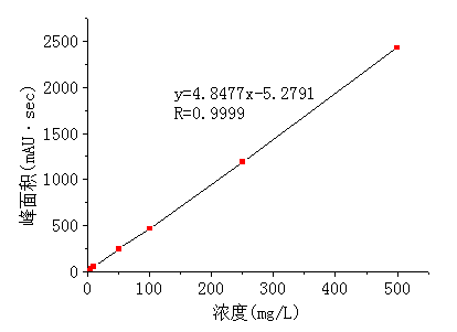 圖5-3 濃度與峰面積線性關(guān)系圖