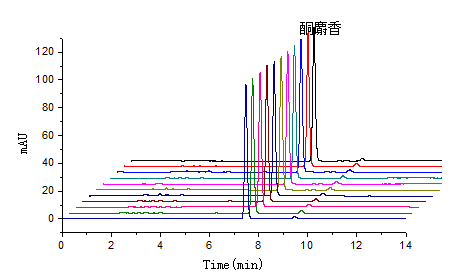 圖4-2 酮麝香標準品連續(xù)進樣重復性譜圖
