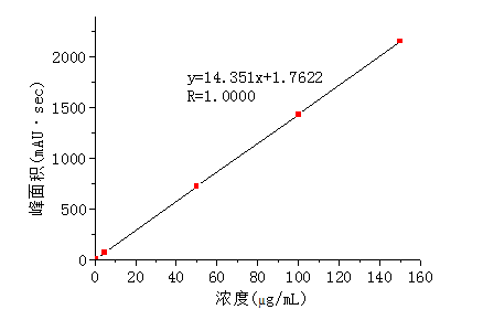 圖4-3 濃度與峰面積線性關(guān)系圖