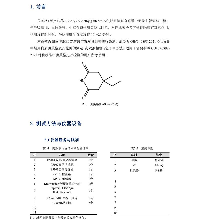 化妝品中禁用物質貝美格及其鹽類的測定解決方案