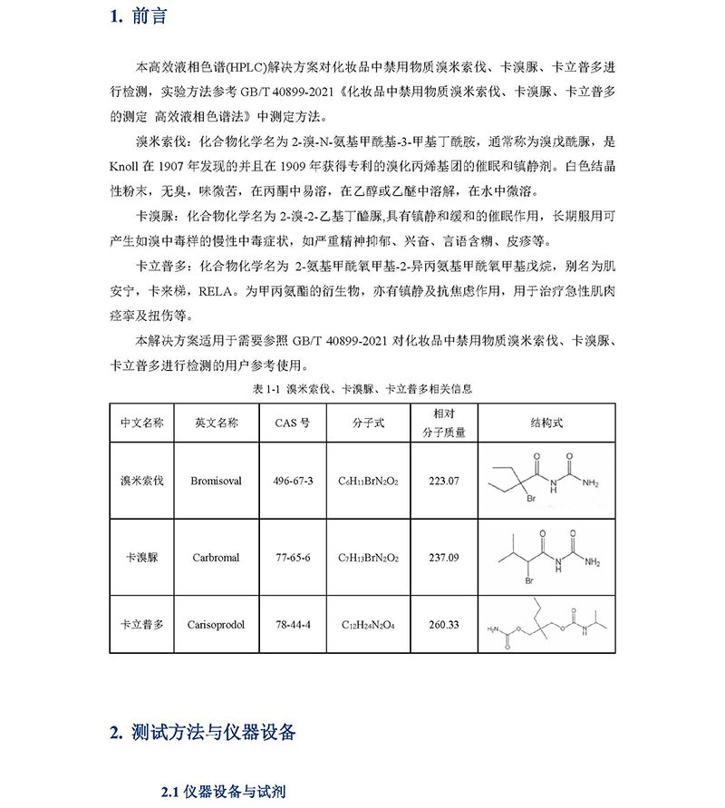 化妝品中禁用物質(zhì)溴米索伐、卡溴脲、卡立普多的解決方案