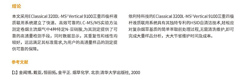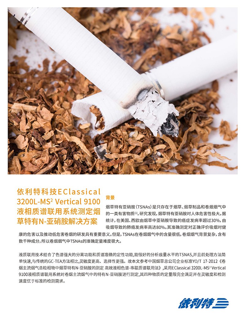 MS2Vertical9100 液相質(zhì)譜聯(lián)用系統(tǒng)測(cè)定煙草特有N-亞硝胺解決方案