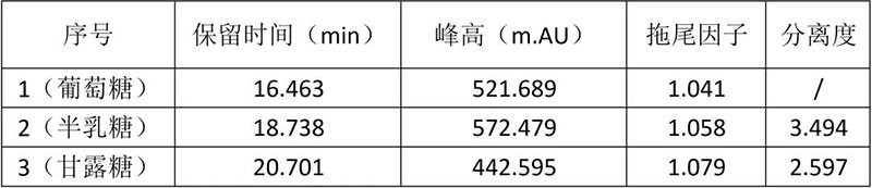 糖分析專用柱配合示差折光檢測器,能很好的將葡萄糖、半乳糖和甘露糖3個目標物達到很好的分離,且峰形良好是分離小分子糖的良好選擇。