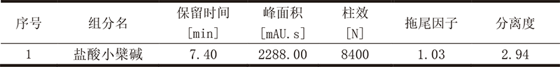 依利特新款的EClassical 3200液相色譜儀搭配經(jīng)典的SinoChrom ODS-BP色譜柱,對(duì)四方胃片中的鹽酸小檗堿成分進(jìn)行分析,峰形對(duì)稱性好,分離度高,滿足定性定量分析的需求。