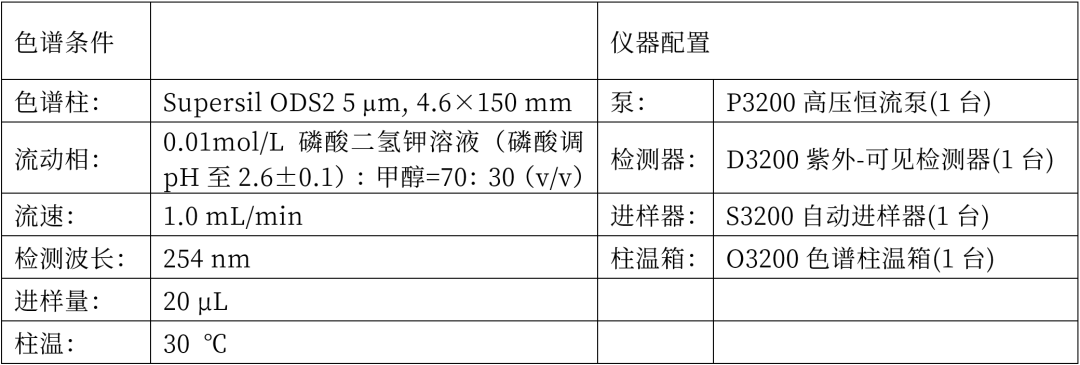 色譜條件及配置: