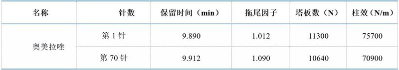 使用SinoPak BEH T-C8 色譜柱分析奧美拉唑腸溶膠囊,不僅柱效高,峰形好,分離度滿足藥典要求,而且連續(xù)進(jìn)樣七十針柱效沒(méi)有明顯的下降。SinoPak BEH T-C8 色譜柱是分析奧美拉唑等堿性化合物的不二之選。