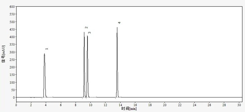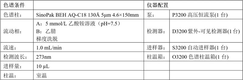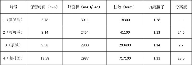 依利特最新款的EClassical 3200液相色譜儀,搭配最新款SinoPak BEH AQ-C18色譜柱,能很好的對咖啡因、可可堿、茶堿、黃嘌呤進行分析,且峰形良好,滿足定性定量分析的要求。