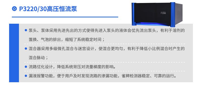 具有流量穩(wěn)定、流量脈動低;流量梯度準(zhǔn)確、梯度重復(fù)性佳,滯后體積小等特點,極大程度的保證實驗的重復(fù)性。提供流動相選擇、流動相脫氣等功能,實現(xiàn)在無人值守下自動完成流動相的更換。