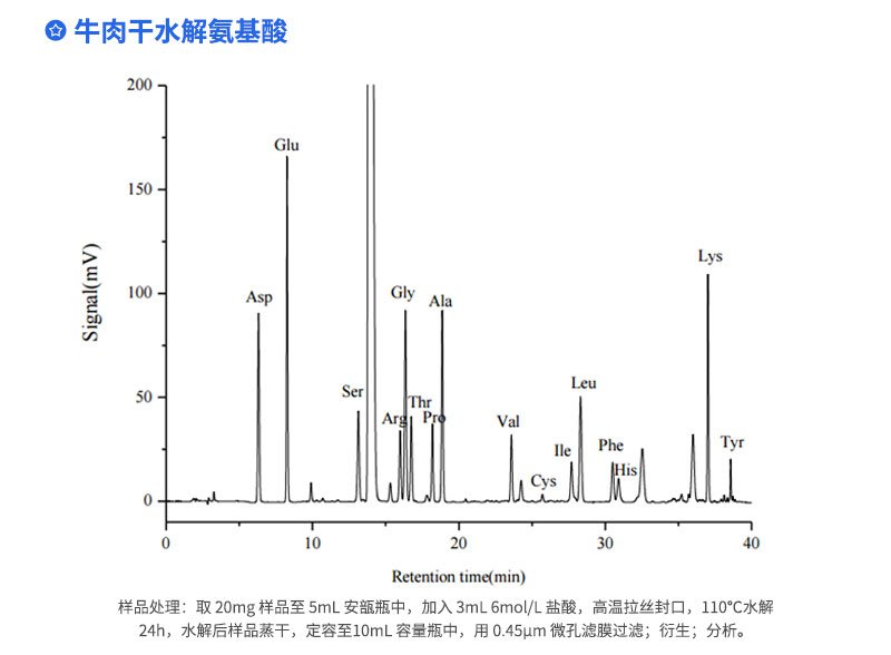Elite-AAK 氨基酸分析系統(tǒng)基于HPLC 技術(shù)高精度分析各種復(fù)雜基質(zhì)中的氨基酸。以DNFB(2,4-二硝基氟苯)為衍生試劑完成柱前衍生后,進(jìn)行高效液相色譜梯度分離以及紫外檢測(cè),同時(shí)分析18種基本氨基酸,分離效果均達(dá)到基線分離。系統(tǒng)穩(wěn)定性好,連續(xù)7次進(jìn)樣,18種氨基酸的保留時(shí)間RSD≤0.25%,峰面積RSD≤0.8%;方法靈敏度高,以天冬氨酸為例,最低檢出限為7.44x10-12mol。檢測(cè)成本低,緩沖溶液和有機(jī)溶劑作流動(dòng)相,不需要特殊試劑。