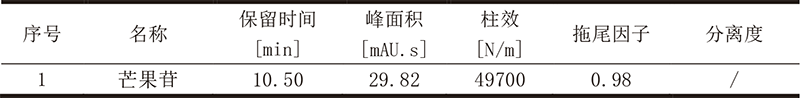 芒果苷,又稱莞知母寧,治療慢性支氣管炎等有較好療效。依利特參考GB/T 40832-2021《芒果葉中芒果苷的測定》中的方法 (高效液相色譜-紫外檢測法),使用EClassical 3200高效液相色譜對芒果葉中芒果苷進行檢測。