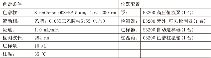 色譜條件及配置: