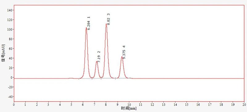 使用EClassical 3200高效液相色譜儀匹配新推出的SinoPak BEH T-C18色譜柱分析黃曲霉素樣品,柱效高,分離度符合要求,完全可以滿足黃曲霉素定性定量分析的需求。