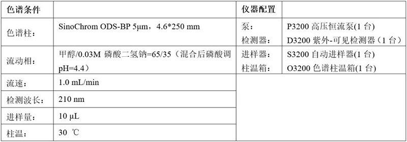 色譜條件及配置