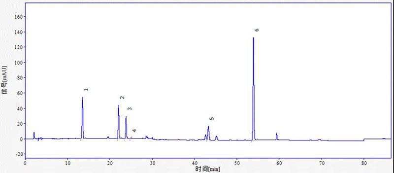 由此可見,使用依利特EClassical 3200高效液相色譜儀以及Supersil ODS-B色譜柱,測(cè)得的魚腥草配方顆粒的特征圖譜滿足藥典要求。